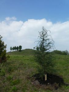 A swamp cypress, originated from Florida was planted near the top of the hill. The tree was not too happy. With the help of the mobile digging machine we took the tree to near the lake.
