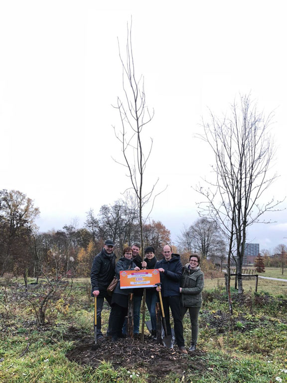 Winnend team MeerhovenQuiz plant bomen in Park Meerland