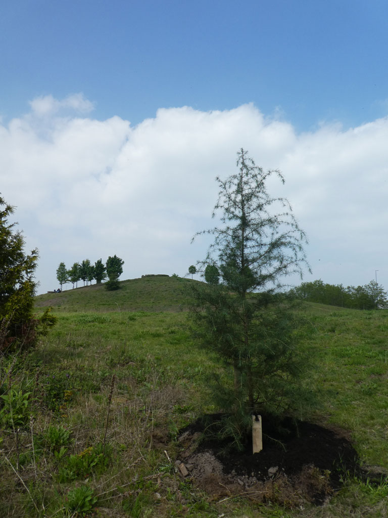 Een moerascypres die boven op de heuvel ongelukkig stond te zijn hebben we verplant naar een plaatsje nabij de vijver. Daar moesten we eerst een diep plantgat graven in een harde uit bouwpuin bestaande bodem.