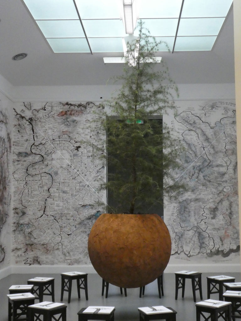 Zoals gezegd, na de expositie krijgt de boom een plekje in de stad, dan mag zijn zachte top weer hangen en wuiven in de wind en zal de stam uitgroeien tot een reus van een stam, insha allah en als de mensen laten.