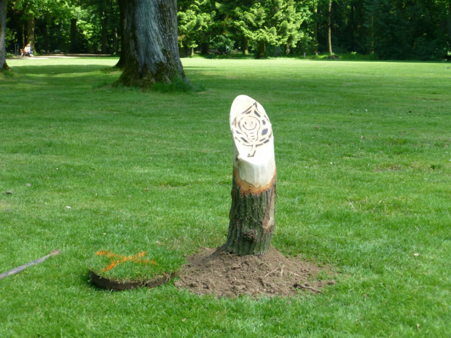 NIEUW Binnenkort zullen verschillende bomen in de stad een markeringspaal krijgen. Op deze paal wordt een logo gebrand. Een dergelijke paal herinnert de medewerkers in het groen aan een speciale afspraak om bij de bewuste boom het blad te laten liggen. Voor de stadsboom kunnen we een levensloop bestendig boombeheer organiseren. Met bewustzijn voor de ontwikkeling van het wortelgestel in de loop van de jaren. Horizontale wortels worden dikker. Wortels die eerst 10 cm onder het maaiveld groeiden, steken nu al uit boven het maaiveld. O jee, uitsteken boven het maaiveld……..