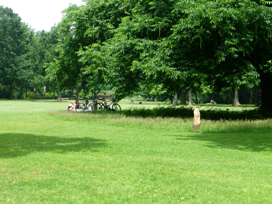De zelfde boom in het Henri Dunantpark enkele weken later. Op de rand van de boomkroon wordt de beschutting gezocht. De hond kan in de schaduw liggen. De bodem voelt al zachter aan.