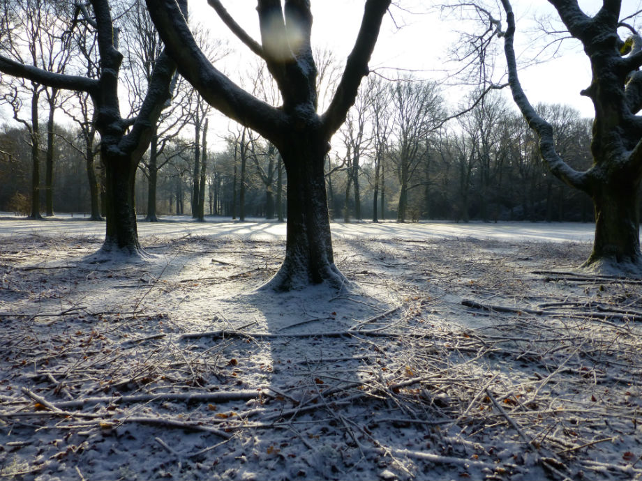 Onder de boomkronen is het nu een NO GO AREA voor de maaimachine en de bladruimers. Zie de transparante boomkronen. Verontrustend.