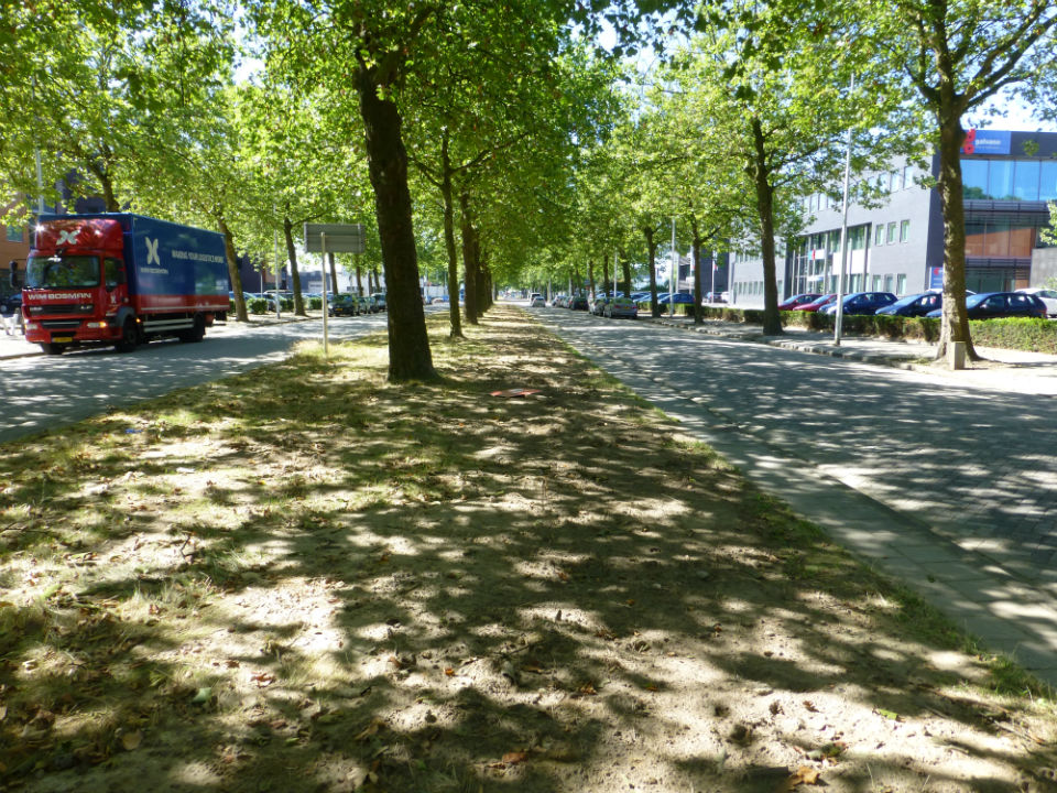 De Dillenburgstraat is een groene as op De Hurk. Toch geven de platanen daar niet erg veel schaduw. Tot onze grote schrik zagen we zomer 2013 dat in de middenberm met bomen een nieuwe datakabel is gelegd. Dwars door het wortelpakket. Dat kost conditie van de bomen. Dat kost blad. Dat levert minder schaduw, meer hitte. Wie maakt zich zorgen? Dit kan geen beleid zijn. Wie pakt dit op? We zijn inmiddels een jaar verder. Gelukkig hebben de bomen een goed groeiseizoen in 2014. Helaas zijn er veel bomen op de Hurk die verder in conditie achter uit gaan.