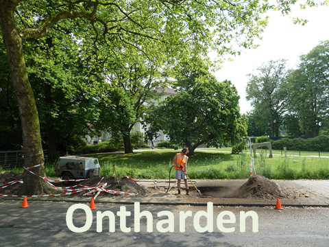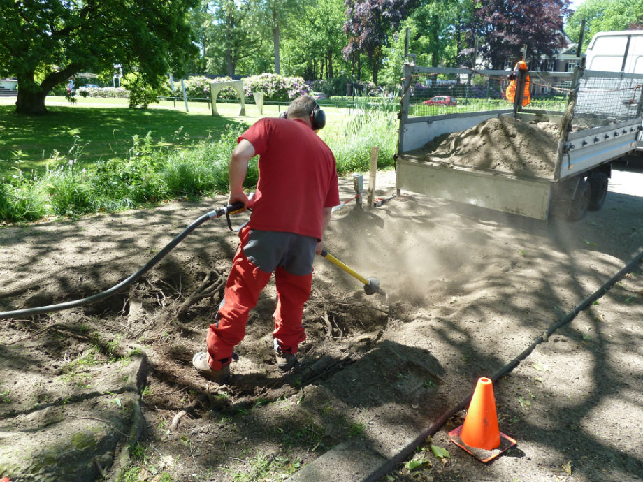 Ontharden om meer lucht toe te laten voor de boomwortels. De Parklaan in Eindhoven zal nieuw ingericht worden. Meer ruimte voor de bomen.